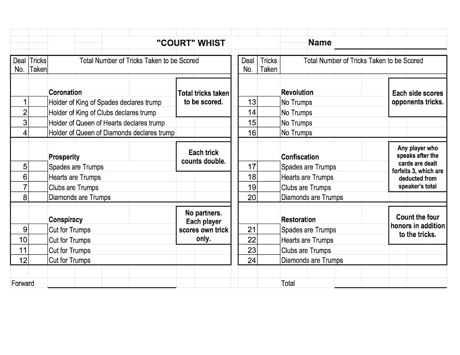 Another benefit of using a printable score card template is that it can save time and effort. Instead of having to create a new score card for each game, you can simply print out a new template whenever you need one. This can make setting up for a game of whist quick and convenient, allowing you to focus on the game itself.