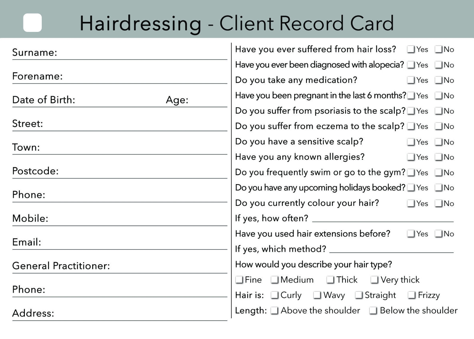 Overall, a printable hair salon client record card template is an essential tool for any salon owner or stylist. By having all the necessary information in one place, you can provide personalized service, track your salon’s performance, and stay organized. Invest in a well-designed template today and see the difference it can make in your salon!