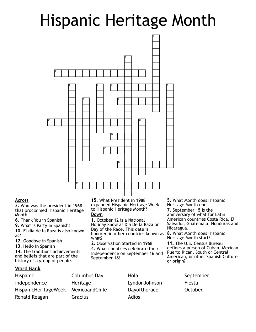 One way to celebrate Hispanic Heritage Month is by engaging in printable activities that promote awareness and appreciation of Hispanic culture. These activities can be enjoyed by people of all ages and can be a fun and educational way to learn more about Hispanic heritage.