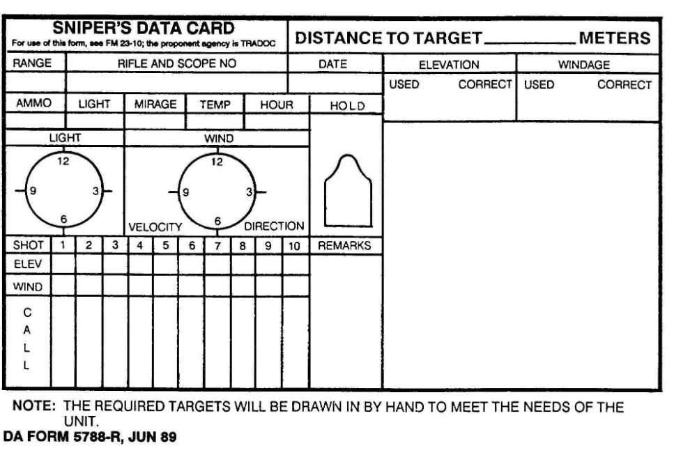 When creating your rifle dope card, be sure to include details such as bullet caliber, weight, muzzle velocity, zero distance, and any specific ballistic coefficients. You can also add columns for wind speed, direction, temperature, and altitude adjustments to account for external factors that may affect your shot placement.