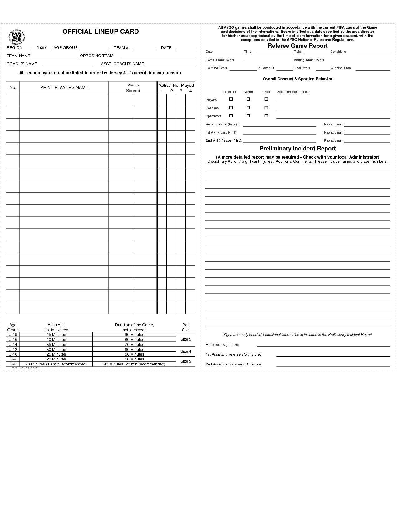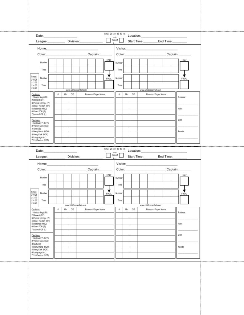 4. Accuracy: By using a standardized template, referees can ensure that all necessary information is recorded correctly, reducing the chance of errors or discrepancies in the final match report.