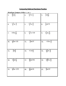One type of problem that may be included in a rational numbers worksheet for grade 7 is simplifying fractions. In this type of problem, students are given a fraction and are asked to simplify it to its lowest terms. This requires students to find the greatest common factor of the numerator and denominator and divide both by this factor to simplify the fraction.