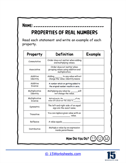 In conclusion, a real numbers properties worksheet is a valuable tool for enhancing your knowledge and proficiency in working with real numbers. By engaging with the various properties through exercises and practice problems, you can develop a strong foundation in mathematics and improve your problem-solving abilities. So, grab a worksheet, sharpen your pencil, and dive into the world of real numbers!