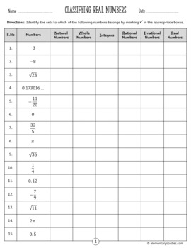Real Numbers Worksheet