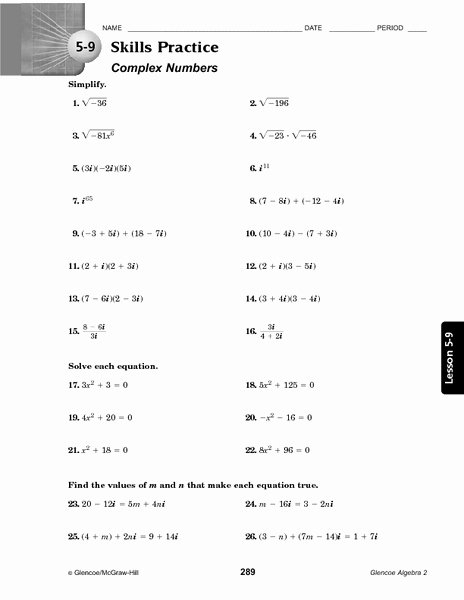 These worksheets typically include a variety of problems that require students to simplify complex numbers by combining like terms, using the properties of exponents, and performing operations such as addition, subtraction, multiplication, and division. By working through these problems, students can improve their skills and gain confidence in dealing with complex numbers.
