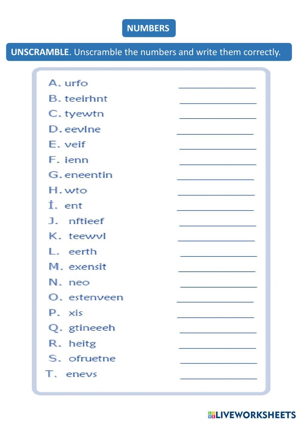 Another type of exercise found in spelling numbers worksheets is filling in missing letters in words. This activity challenges students to recall the correct spelling of numbers and helps them become more familiar with the spelling patterns of different numbers.
