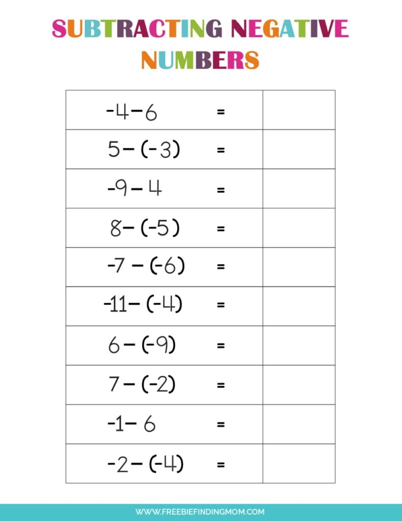 A subtract negative numbers worksheet is a valuable tool for students to practice and strengthen their skills in subtracting negative numbers. These worksheets typically consist of a series of problems that require students to subtract negative numbers and provide the correct answers. By working through these worksheets, students can improve their understanding of negative numbers and develop their problem-solving abilities.