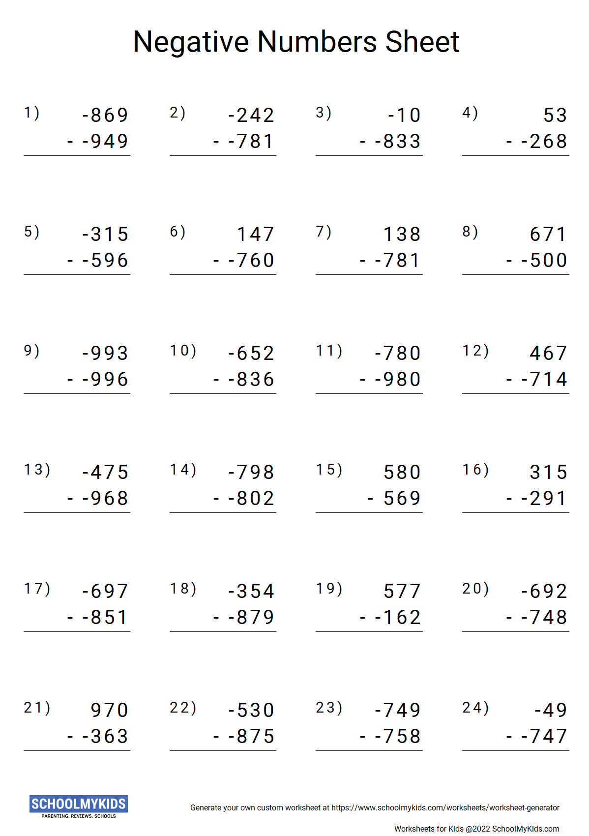 Subtracting negative numbers can be a challenging concept for students to grasp. However, with the right practice and resources, they can easily master this skill. One effective way to help students understand subtraction of negative numbers is by providing them with worksheets that offer practice problems and step-by-step instructions.