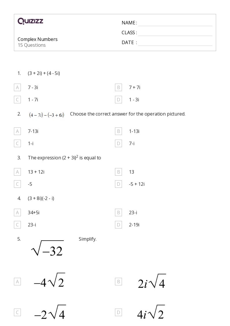By working through a worksheet on complex numbers, you can enhance your skills and confidence in dealing with these mathematical entities. Practice different operations, simplify expressions, and solve problems to improve your understanding of complex numbers. Remember to review the concepts, seek help if needed, and continue practicing to master the intricacies of working with complex numbers.