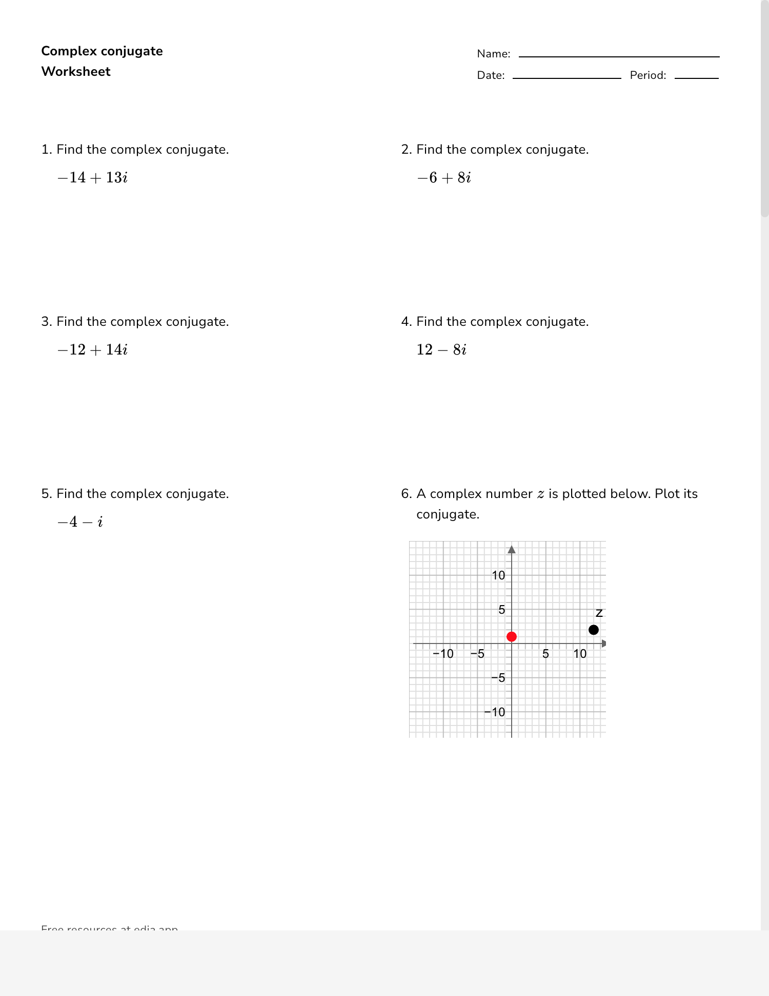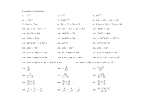Worksheet Complex Numbers