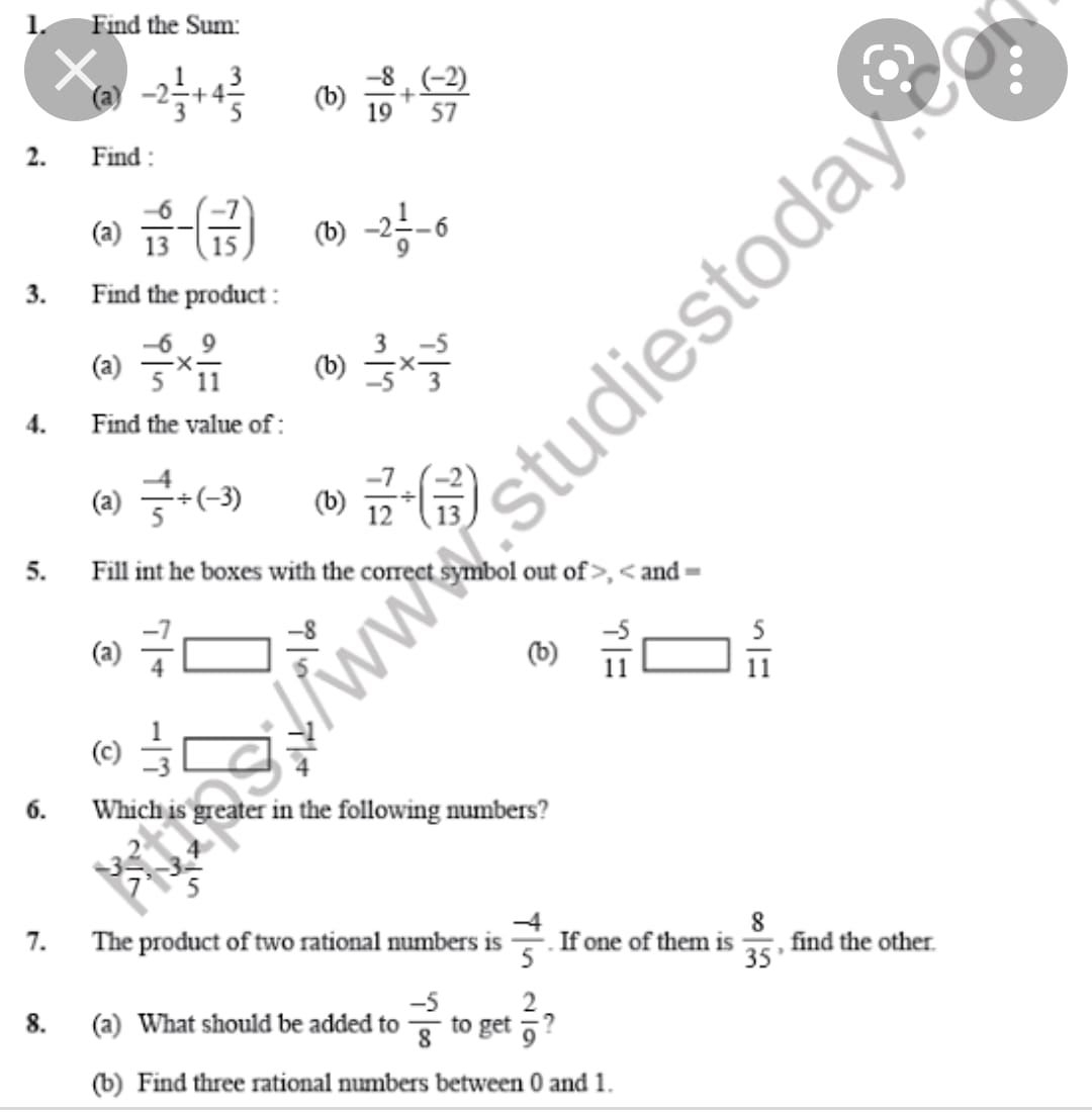 Worksheet for Rational Numbers