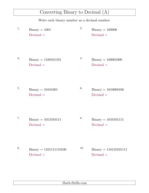 Binary numbers are a fundamental concept in computer science and digital technology. Understanding how to work with binary numbers is essential for anyone looking to delve into the world of programming and computer engineering. This worksheet will provide you with exercises to practice converting decimal numbers to binary and vice versa, as well as performing basic arithmetic operations in binary.