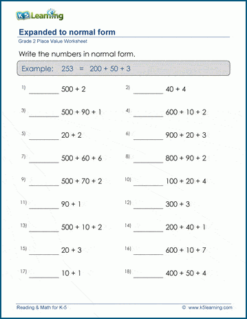 Students can use this worksheet to practice converting numbers from expanded form or word form to standard form. By repeatedly working through problems like these, students can reinforce their understanding of place value and improve their ability to express numbers in a clear and concise manner.