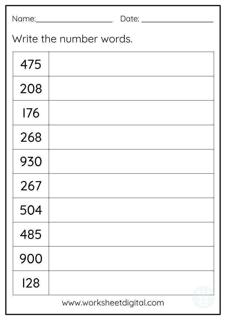 These worksheets typically contain a series of numbers that students have to write out in words. This not only helps them practice their spelling but also reinforces their understanding of how numbers are represented in written form. It is a fun and interactive way to engage students in learning this important skill.