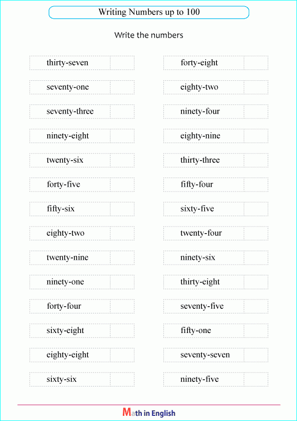 Writing numbers from 1 to 100 is an essential skill for young students to learn. It helps them understand numerical patterns and improves their number recognition abilities. One effective way to practice writing numbers is through worksheets.